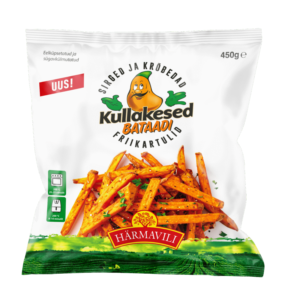 Härmavilja Kullakesed sakilised ja sirged sügavkülmutatud friikartulid on maitsvaks lisandiks erinevatele roogadele. Härmavilja friikartulid on eelküpsetatud, mis muudab nende valmistamise eriti lihtsaks.