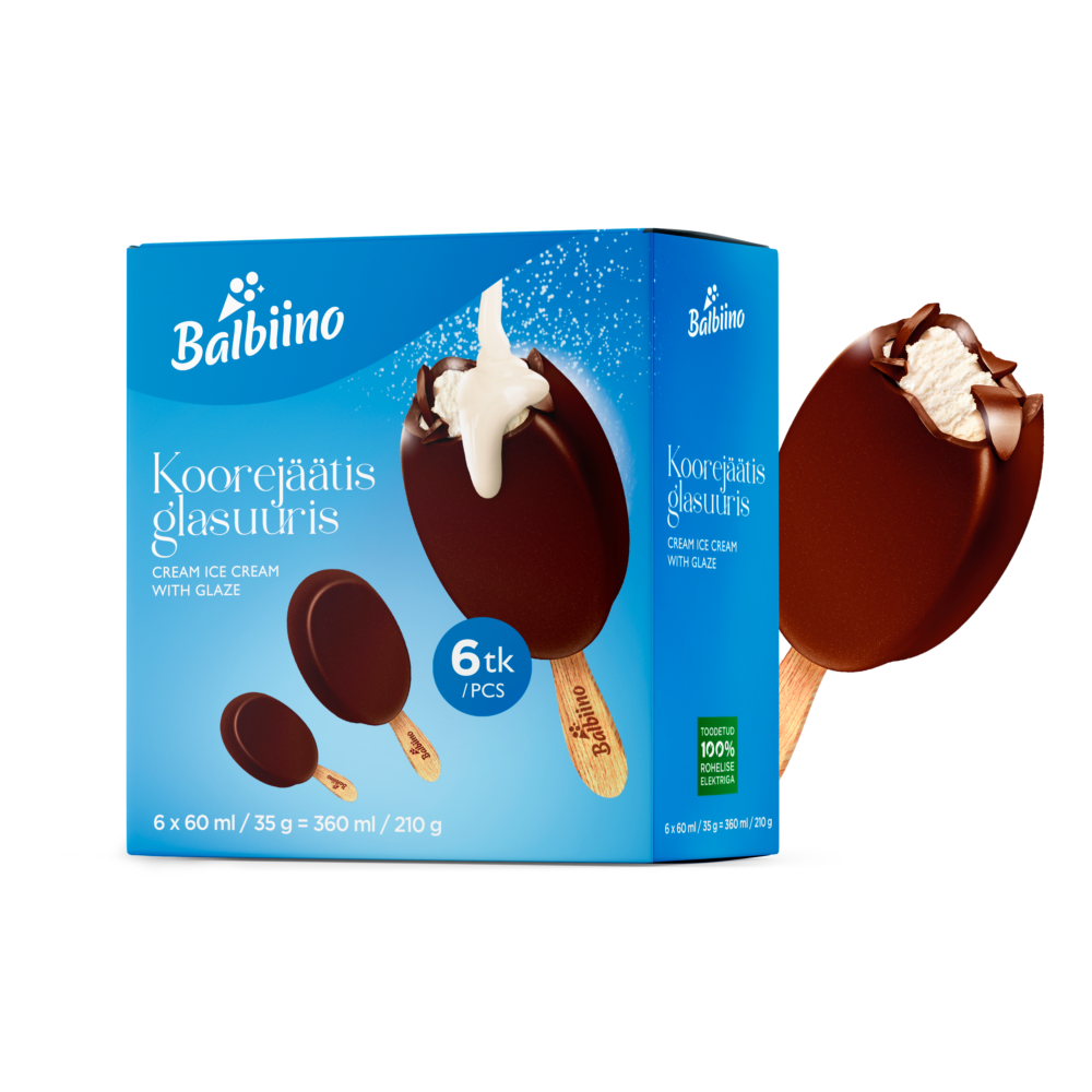 Balbiino toob turule esimese kodumaise multipaki. Karbis on 6 maitsvat koorest vanillijäätist, mis on kaetud šokolaadimaitselise glasuuriga. Väikesed pulgajäätised on täpselt paras ports, mida korraga endale koju kaasa osta või kohe sõpradega jagamiseks.